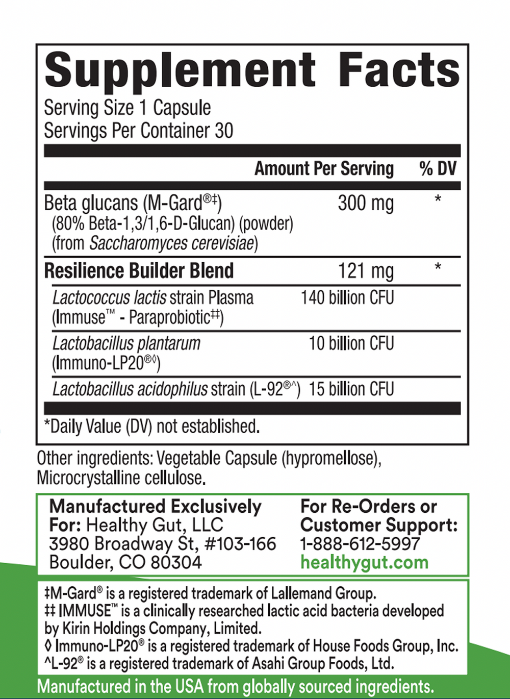 Holoimmune is comprised of 3 licensed heat killed strains known as paraprobiotics along with beta gluons.